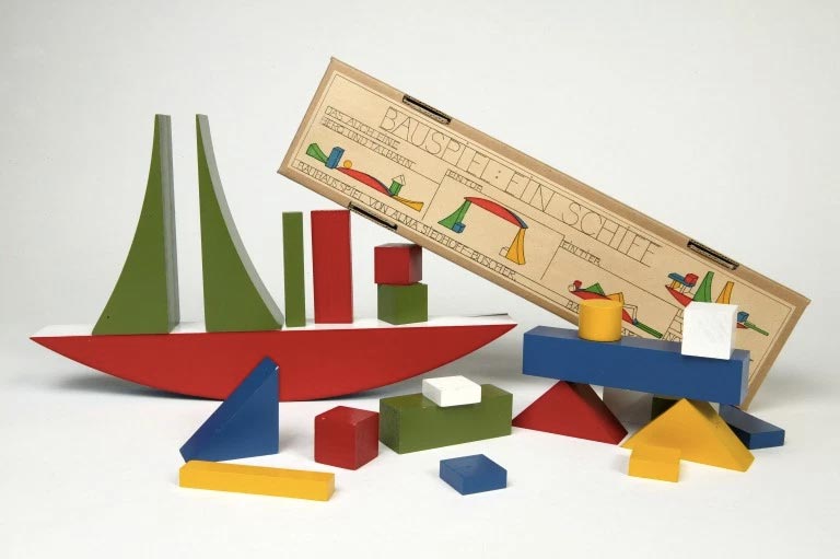 Lors de l’Exposition du Bauhaus en 1923, Eric Brendel et Alma Siedhoff-Buscher sont mandatés pour l’ameublement et la décoration de la chambre d’enfant de la maison témoin Haus am Horn.